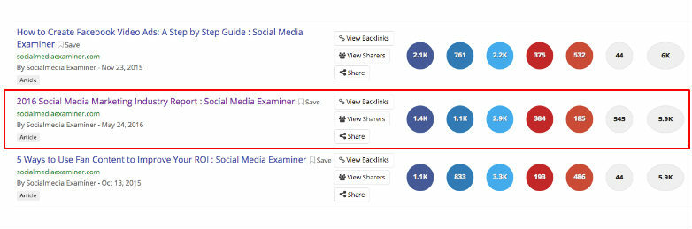 The latest industry report was one of the most highly shared on Social Media Examiner but as we can see below it also received ten times the domain links of other content with similar levels of shares.