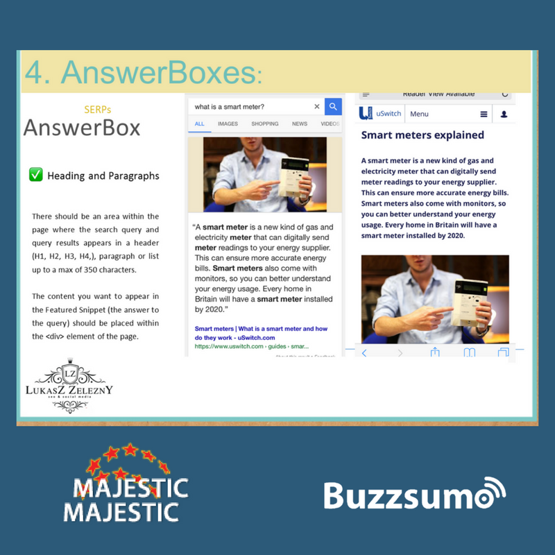 Answer boxes are the best place to rank on Google, Lukasz says. While there is no direct formula for getting content to show as an answer box, there are a few steps that increase your chances of being displayed there.