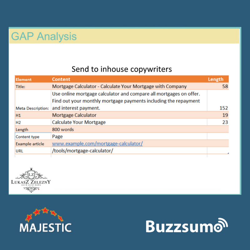 A second research process is Gap Analysis. “Competitors are the best source of information,” Lukasz says. Gap analysis is based on determining what your competitors are writing about.