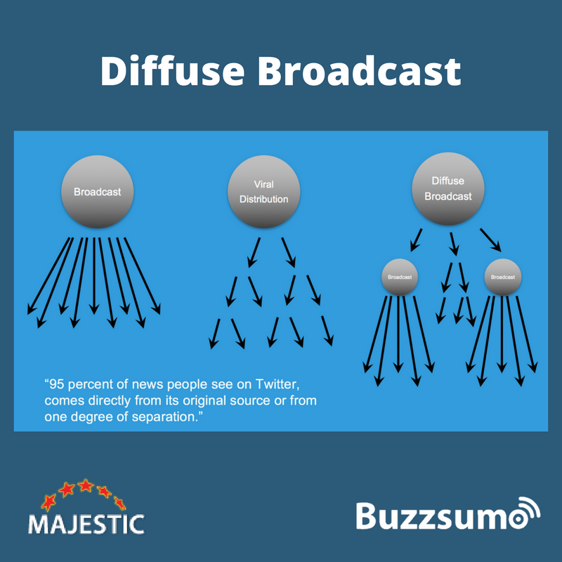 Finally, keep in mind that if content were truly spread virally, we would see one person sharing with 3 people, and those people each sharing with 3 additional people. But, the reality is much more of a diffuse broadcast, with a group of people sharing content with influencers who share the content with their audiences. Those audiences do not in turn drive the same number of shares.