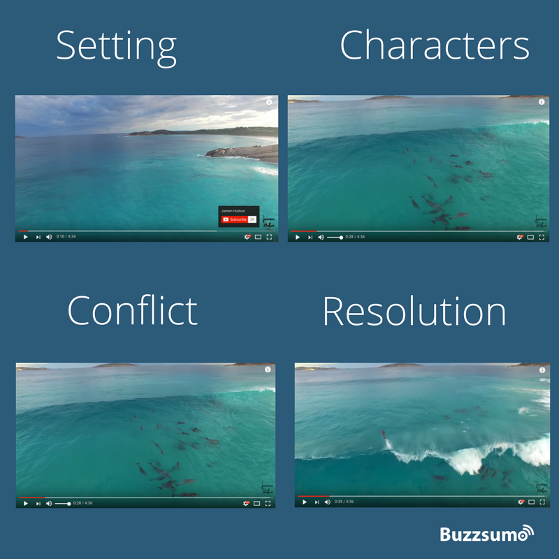 At their most basic, stories have four components: Setting, Character, Conflict, Resolution. Those elements can be included in even the shortest videos.