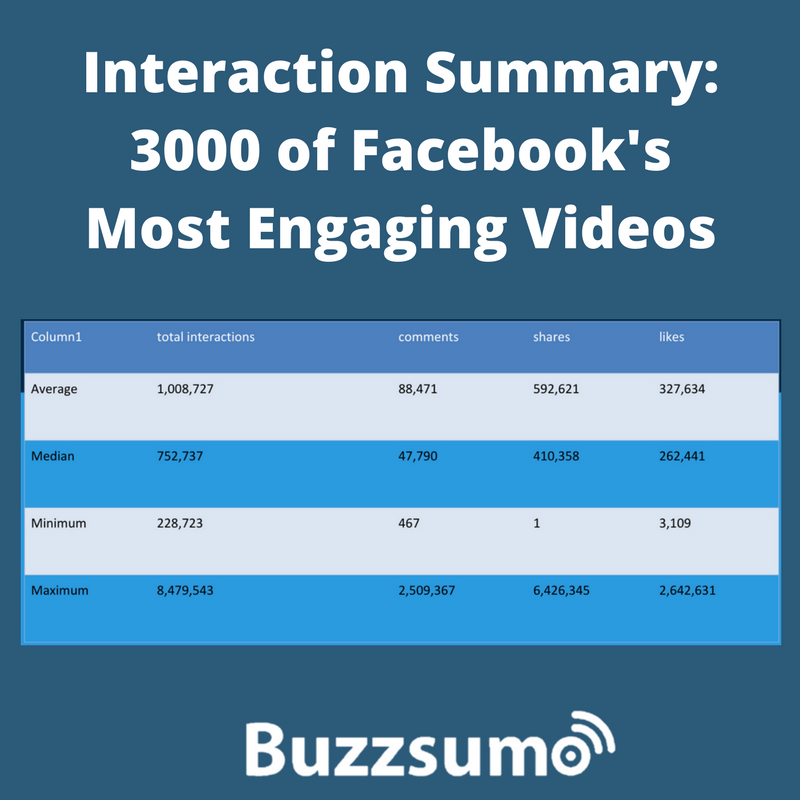 The average interactions–shares, likes, and comments– for these videos ranged from 228,723 to an astounding 8.4 million, with a median of 752,737.