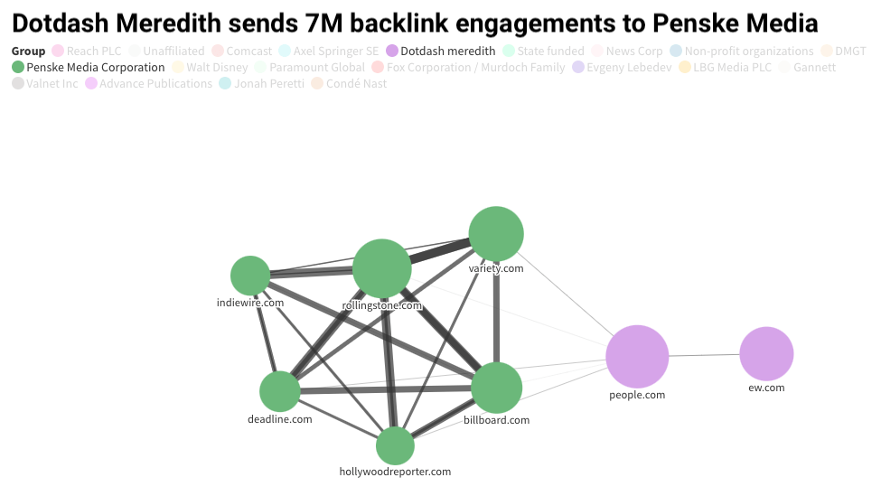 Hot on its heels with 670M backlink engagements is Penske Media Corporation, which consists of entertainment and lifestyle publications Variety and Billboard.