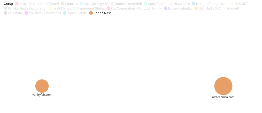 In fact, the two Condé Nast titles that appear in our top 100 most engaging publications (Vanity Fair and Ars Technica) pass zero article links between one another.