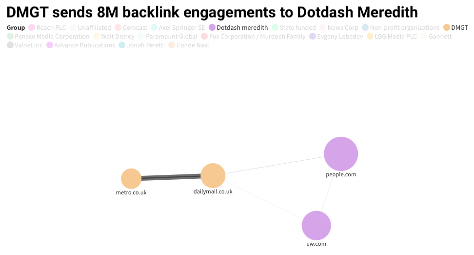 Hovering over a publication in the chart will show the publications sending links to them, and the publications they link out to.