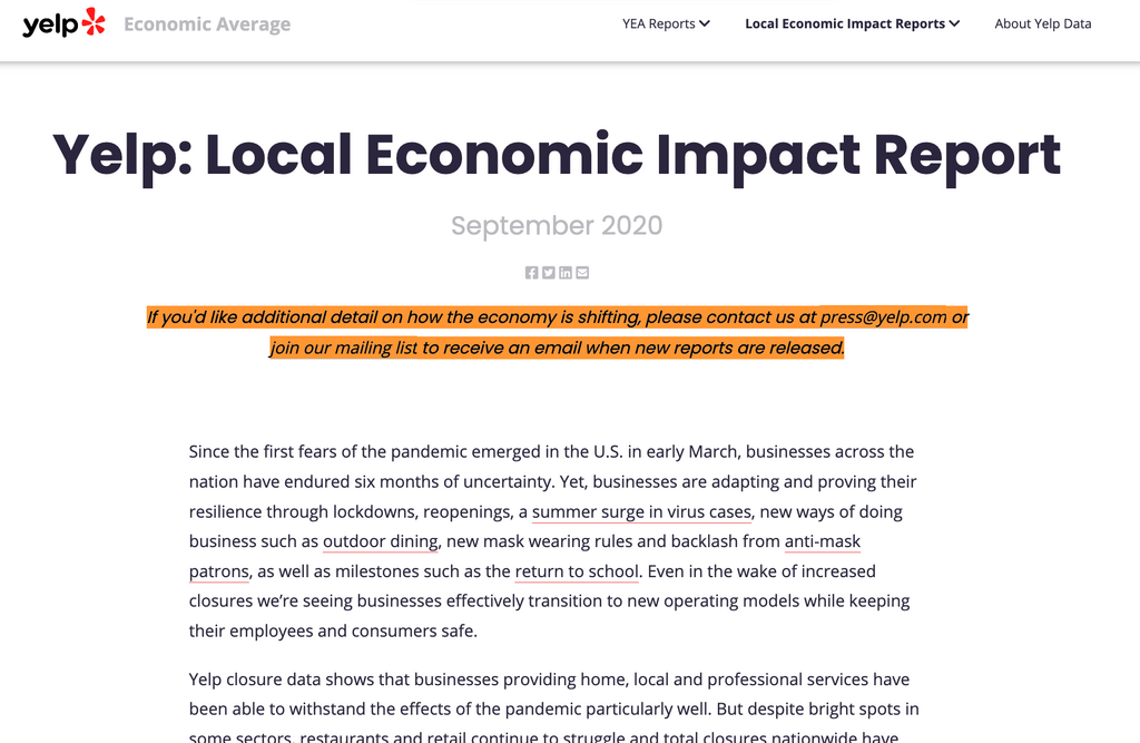 This led to Yelp’s original research (on their own site) syndicating in over 600 publications…