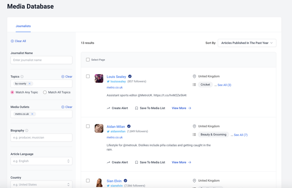 Then find the most relevant and engaging journalists, and add them to your media list.