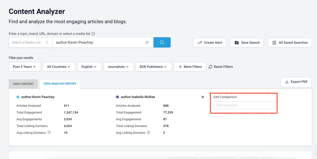 Once you’ve found the top journalists, take them over to BuzzSumo’s Content Analysis Report.