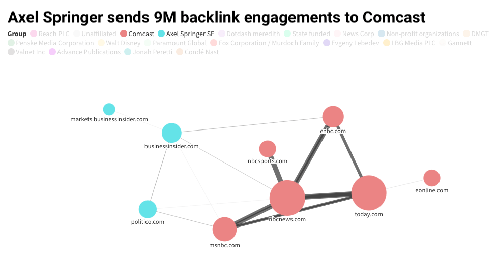 Comcast publications, on the other hand, share the most engaging (internal) links of any family-owned publisher network overall.