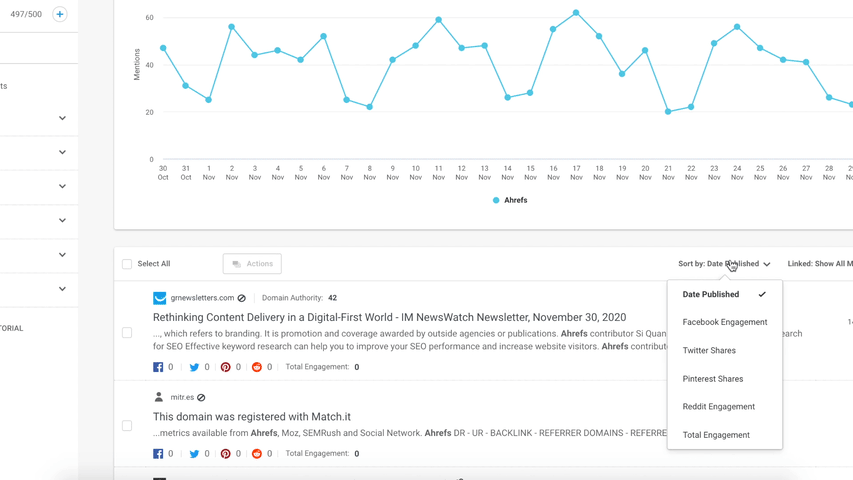 Easily report on all the coverage generated around your brand with BuzzSumo’s Coverage Report. This report tracks and reveals everything from mention engagement data, to how many times your brand is mentioned in a specific article.