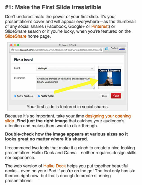 This post by Ann Smarty on How To Optimize Your Slideshare For Maximum Exposure is another great example of how to structure a “how to” post.