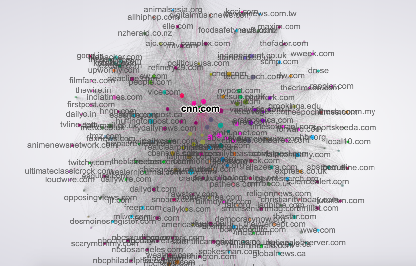We used a tool called Gephi to map the top 400 most trafficked American publishers online. You can play with the interactive version here and see for yourself which publishers are closely related, which are covering the same or similar content, and which online publishers have the highest reach.