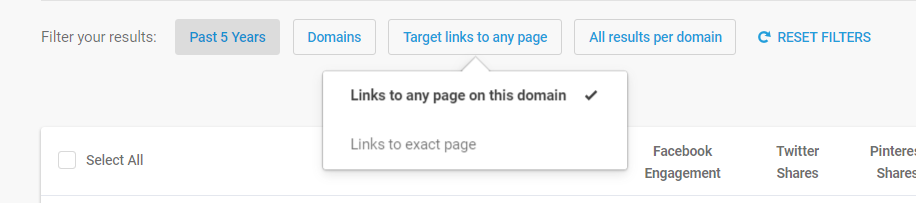 We can also filter the results to search for links from specific domains to any site across our own domain: