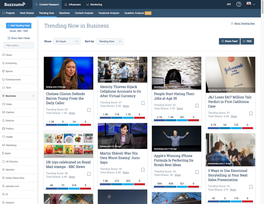 For example, after discovering that BuzzSumo included an online monitoring tool, Mike compared the results with Mention, and decided to switch to BuzzSumo. He also got rid of his Feedly Pro subscription.