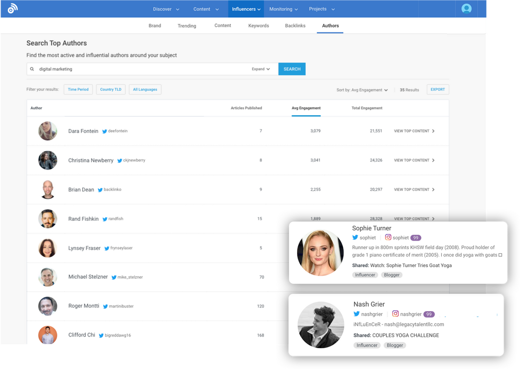 Research and writing are the first two crucial steps for content success. But forget to distribute and amplify and you're setting yourself up for a flop. With BuzzSumo Influencers, you can quickly identify the right people for your business, at scale.