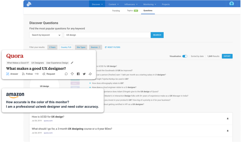 Search thousands of forums and question sites, including Reddit and Quora, in seconds to discover the questions they really want answered.