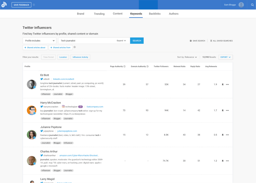 Find the influencers with authority. BuzzSumo helps you identify collaborators for projects, experts for comment and journalists for outreach.